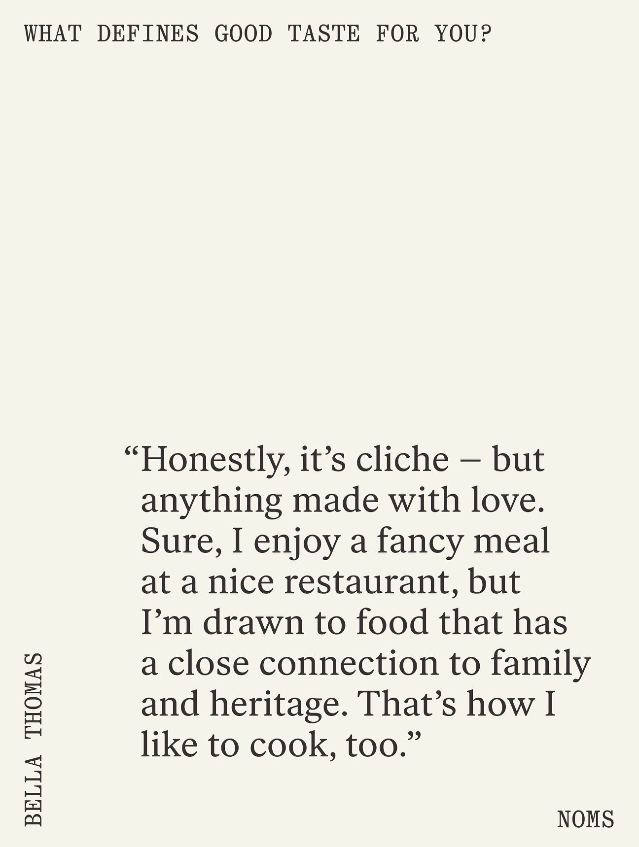 Bella Thomas opens NOMS’ Good Taste profile interview series