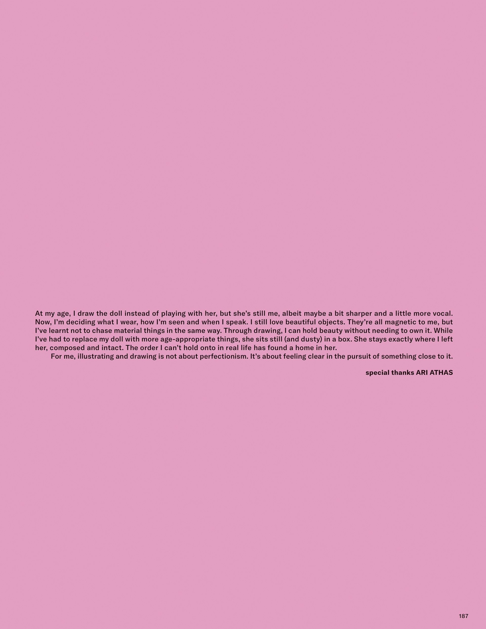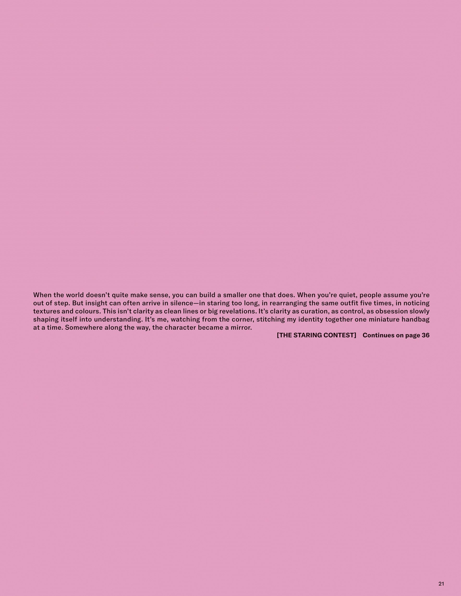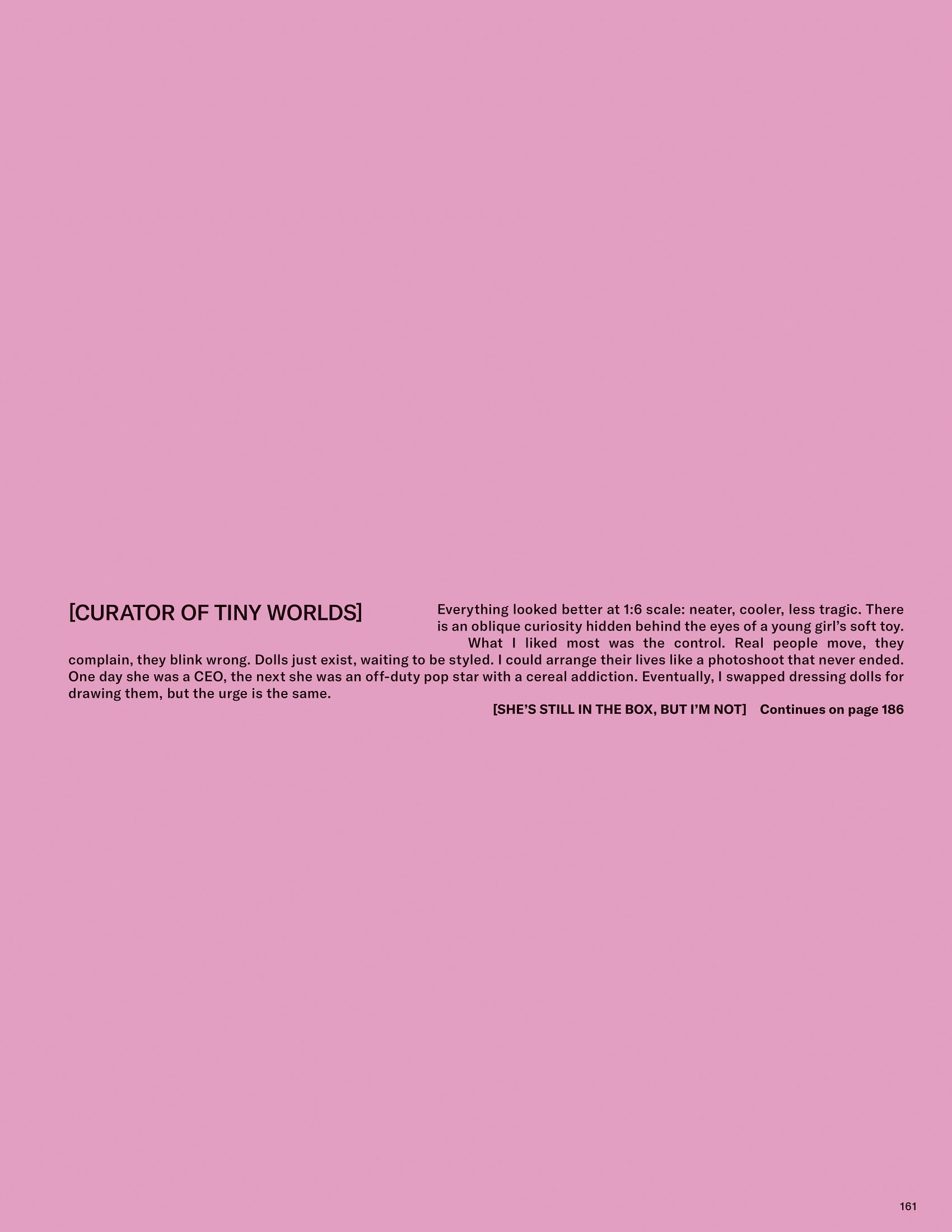 Words & illustrations by Chesca Athas for To Be Magazine Issue 09. A reflection on control and composition, tracing an early fascination with dolls into a study of how imagined worlds shape clarity, authorship, and the act of self-curation.