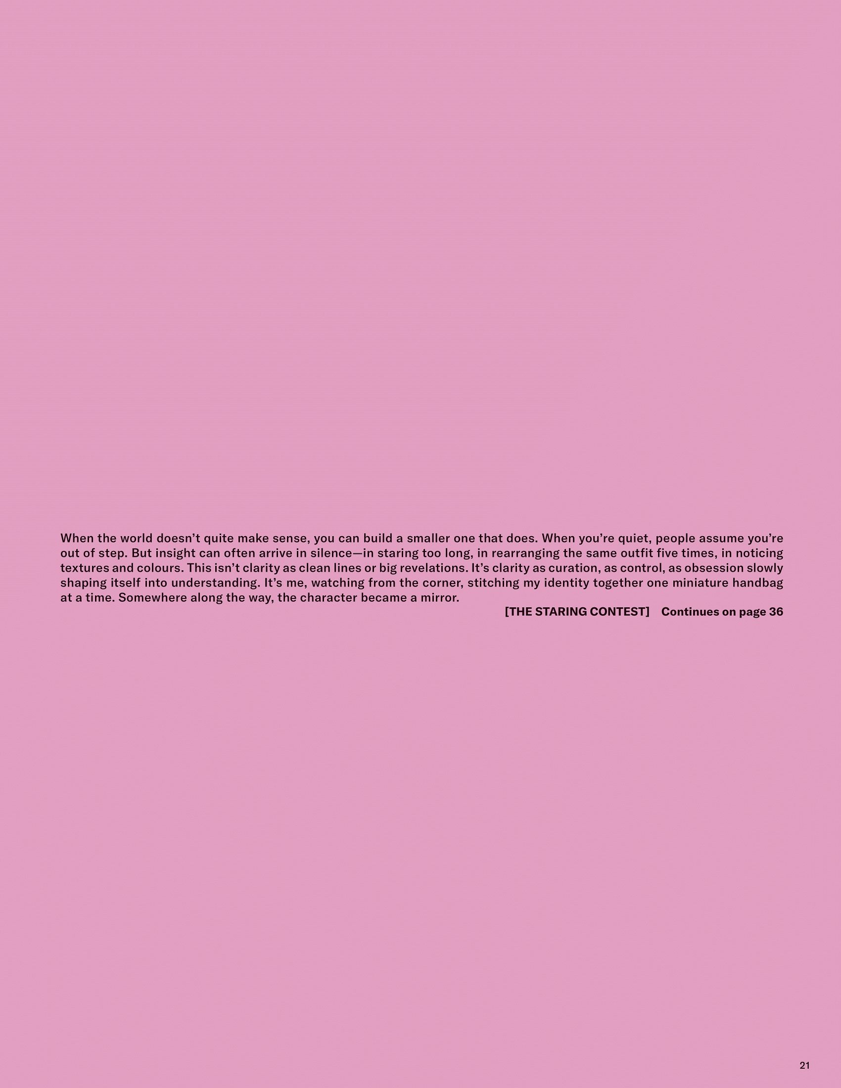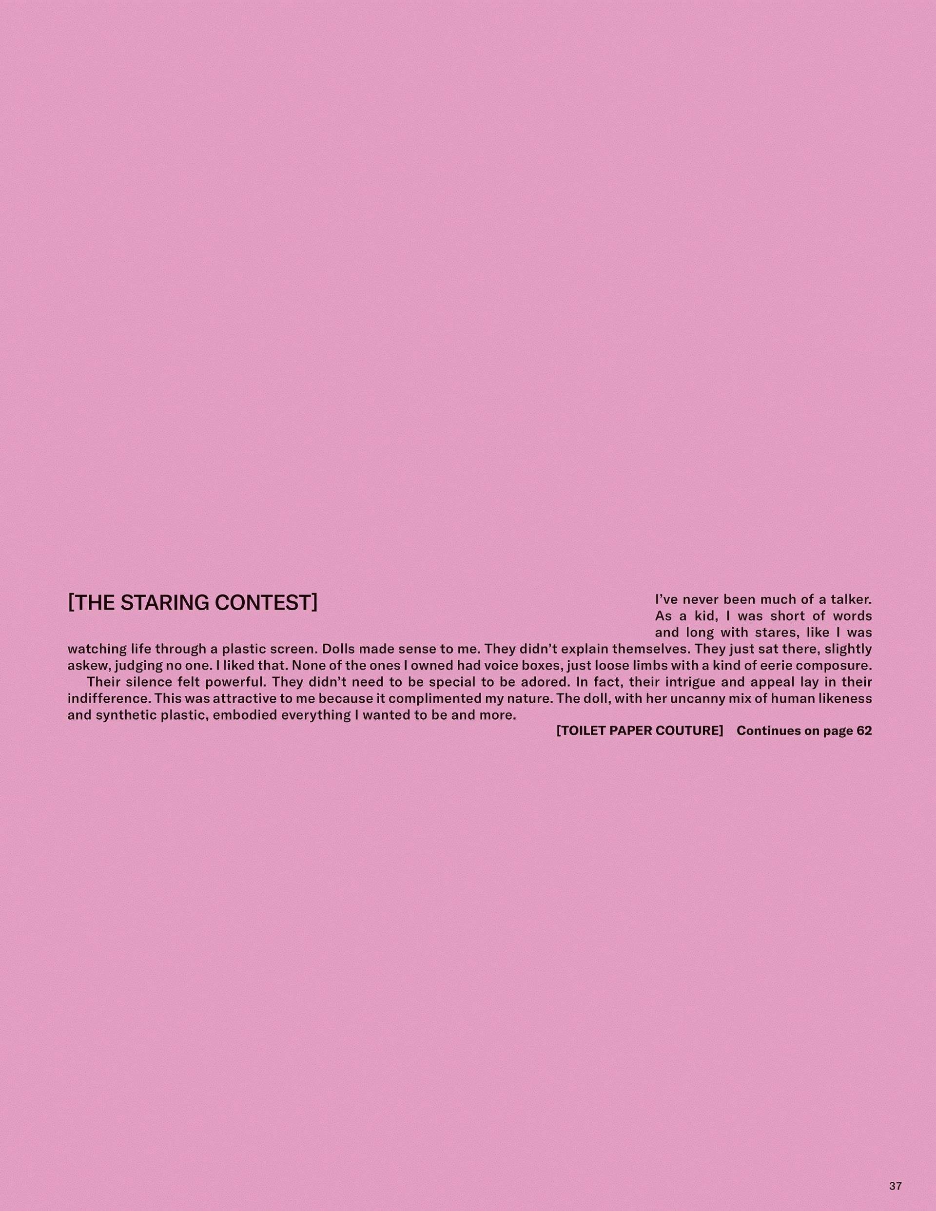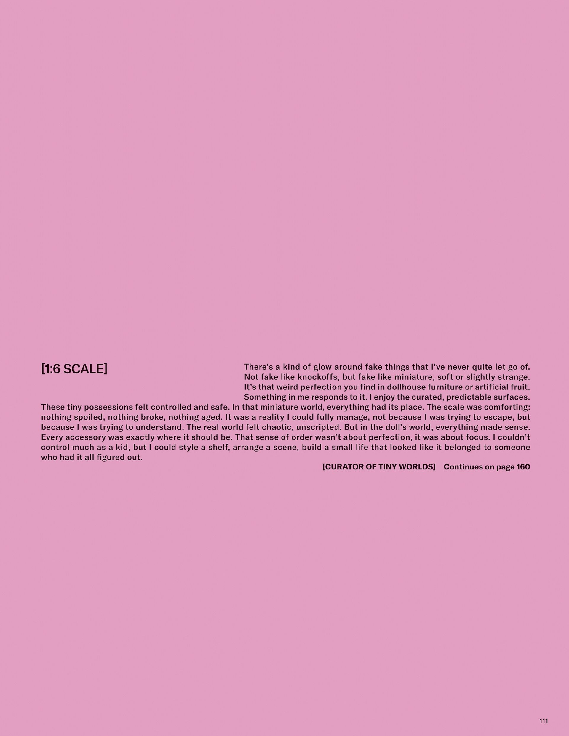 Words & illustrations by Chesca Athas for To Be Magazine Issue 09. A reflection on control and composition, tracing an early fascination with dolls into a study of how imagined worlds shape clarity, authorship, and the act of self-curation.